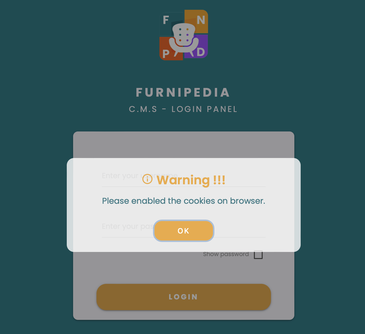 Notifikasi jika Cookie pada browser belum di aktifkan :
