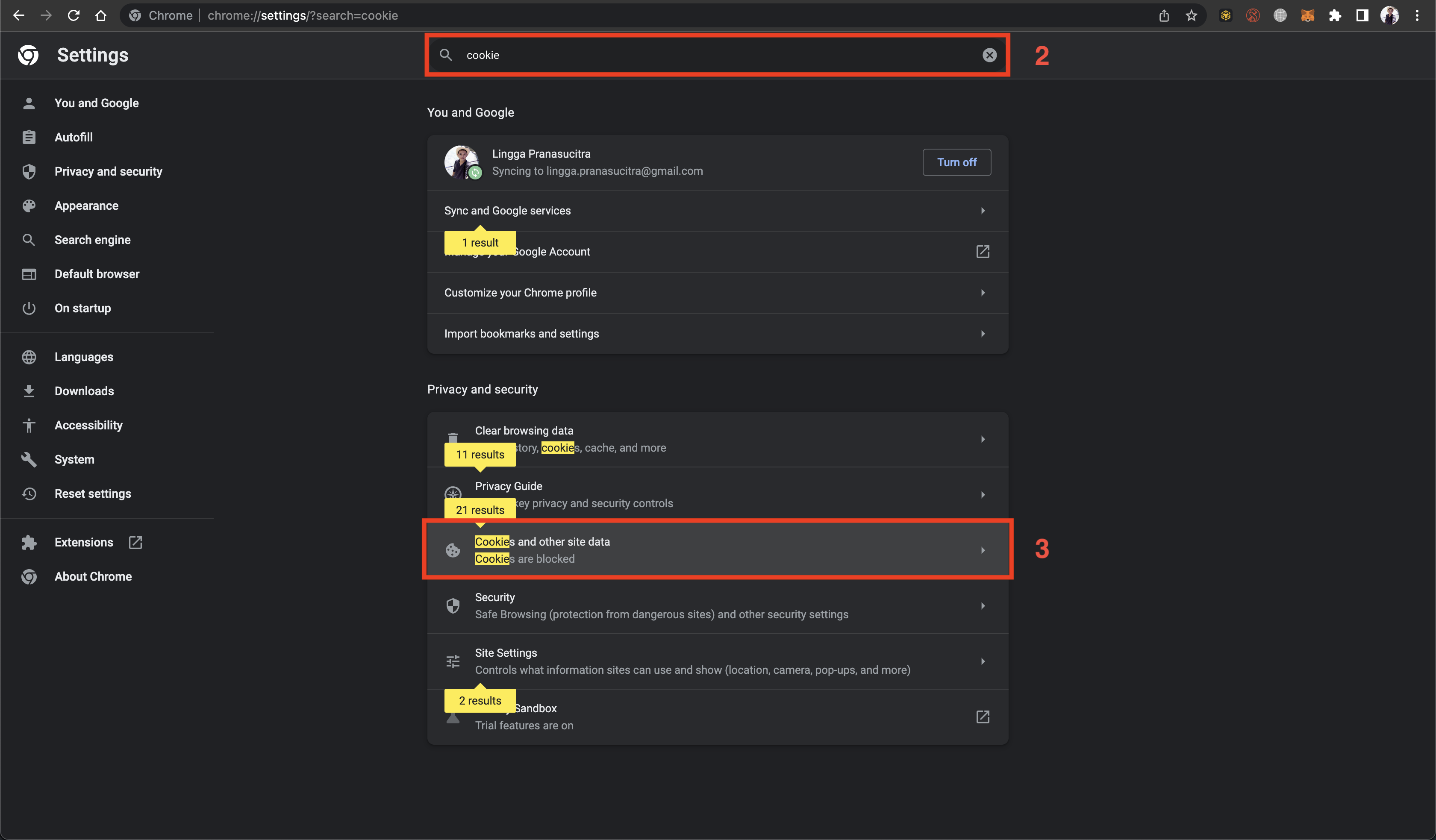 Ketik "cookie" pada kolom "Search" (Pencarian)