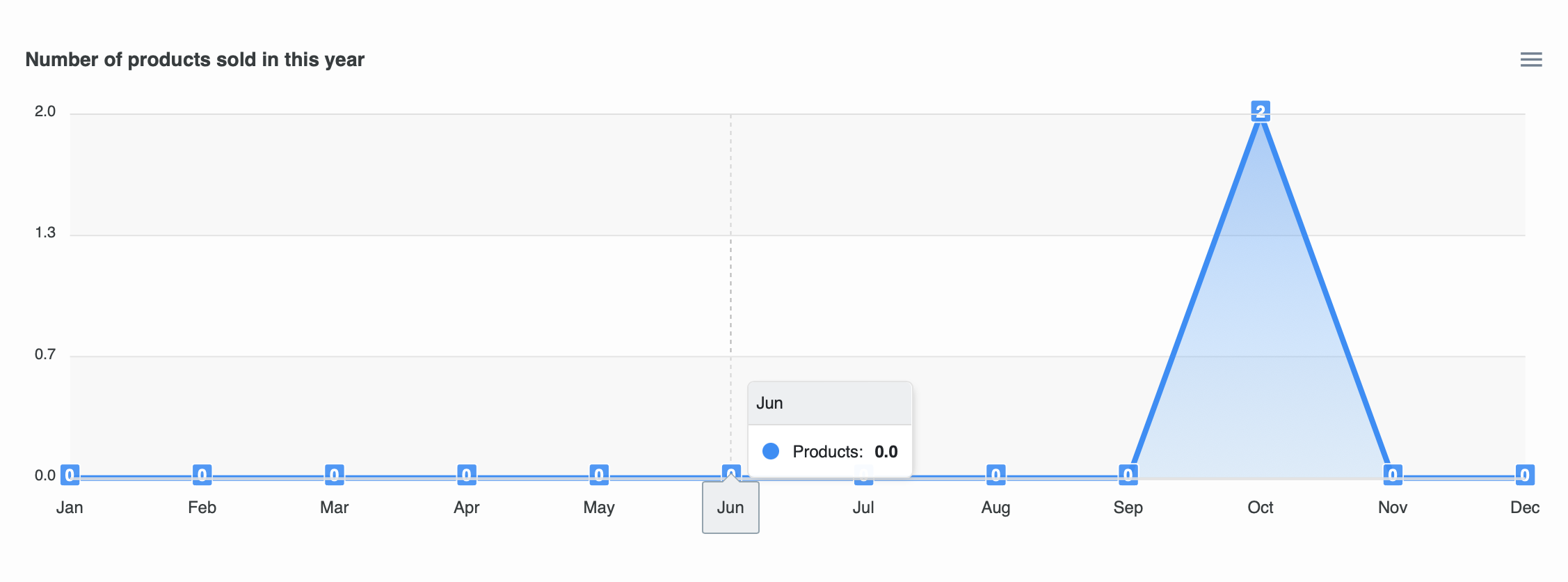 Chart menampilkan jumlah banyak unit yang terjual per bulan pada tahun yang sedang berlangsung.