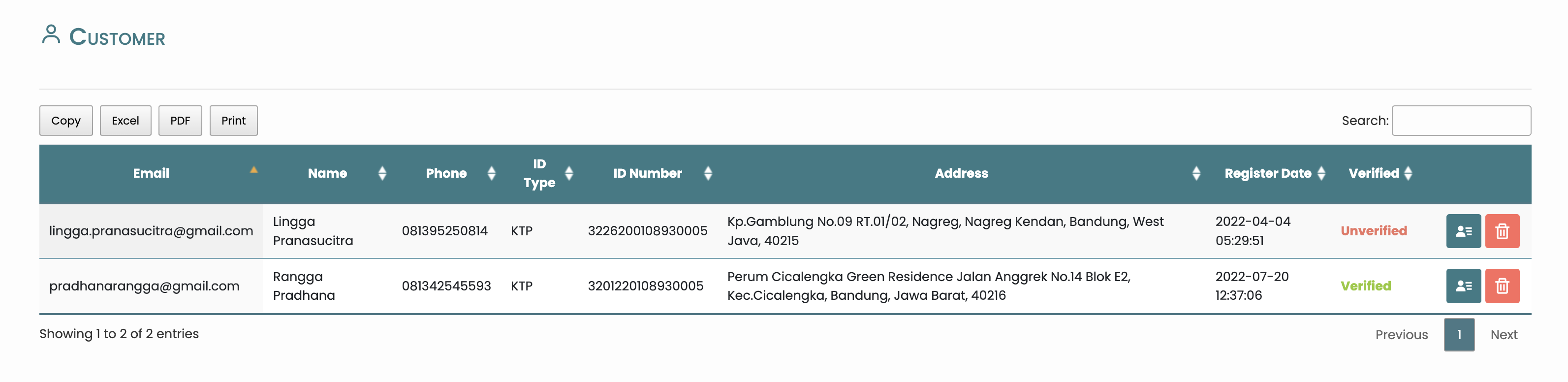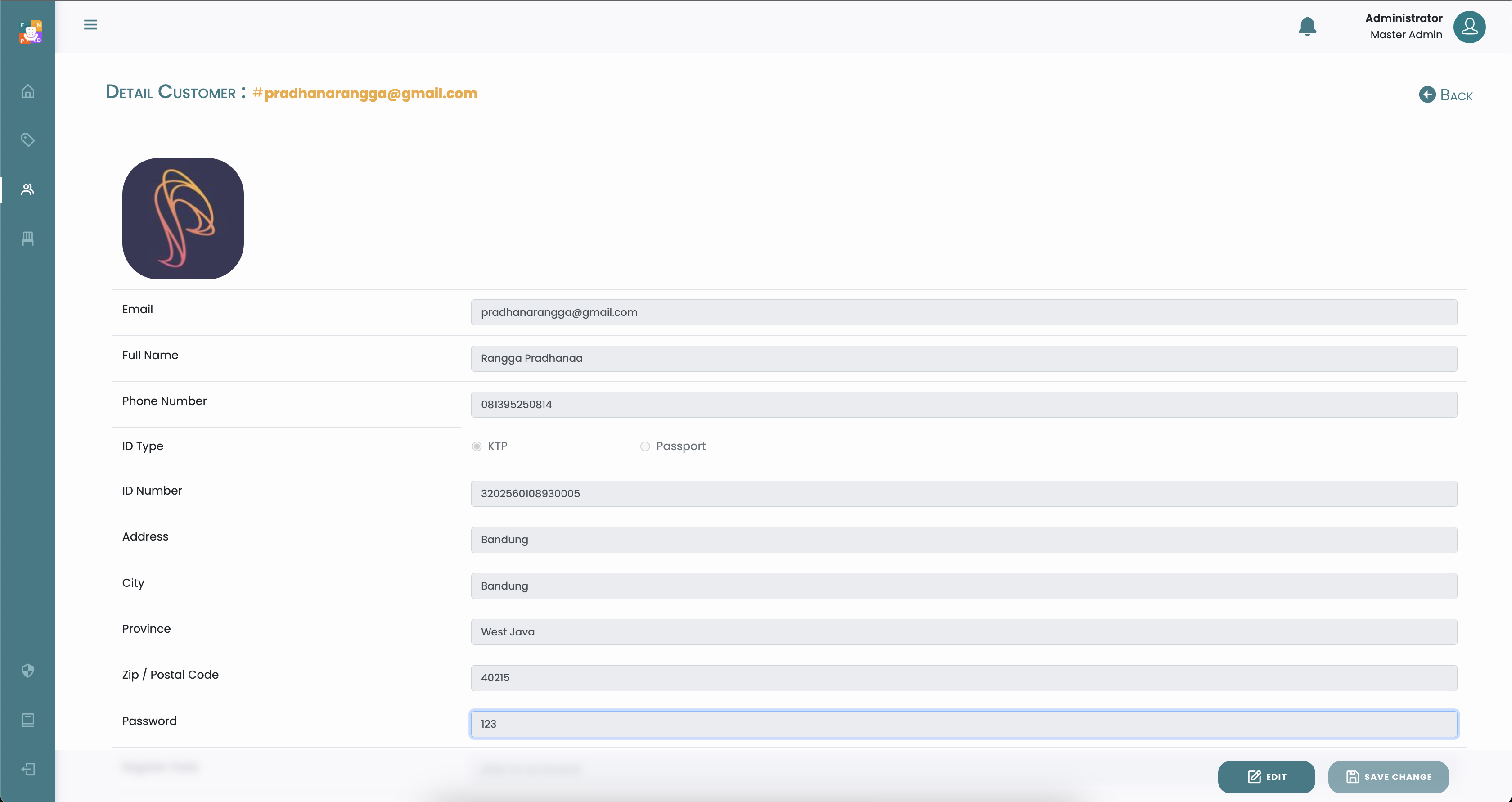 Halaman ini menampilkan list data terkait detail user atau informasi customer yang telah terdaftar di